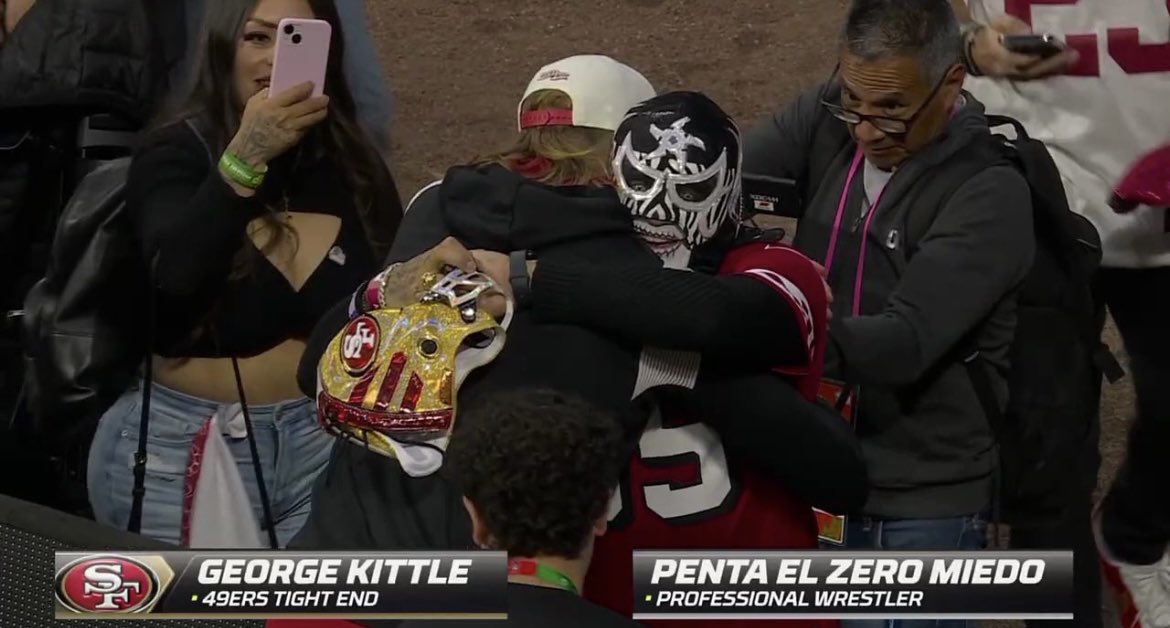 During Monday night’s broadcast of the San Francisco 49ers vs. Arizona Cardinals, ESPN showed footage of Penta El Zero Miedo meeting up with Pro Bowl tight end George Kittle before the game. Penta gave Kittle a custom 49ers lucha mask.