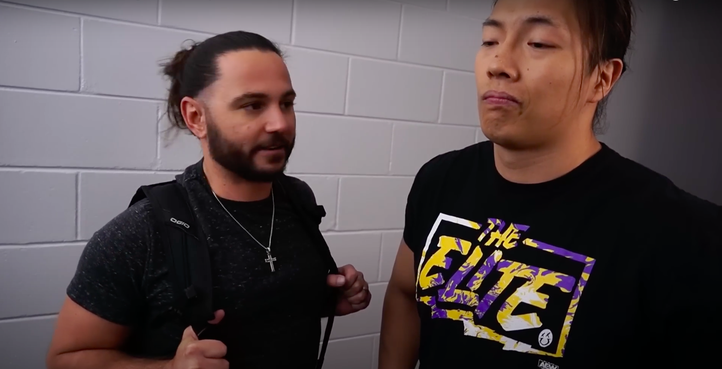 - The video opens this week with Matt Jackson trying to explain the history between Hangman Page and The Elite to Konosuke Takeshita. Nick Jackson refers to it as the best story in wrestling history but Takeshita said the Bloodline is better.