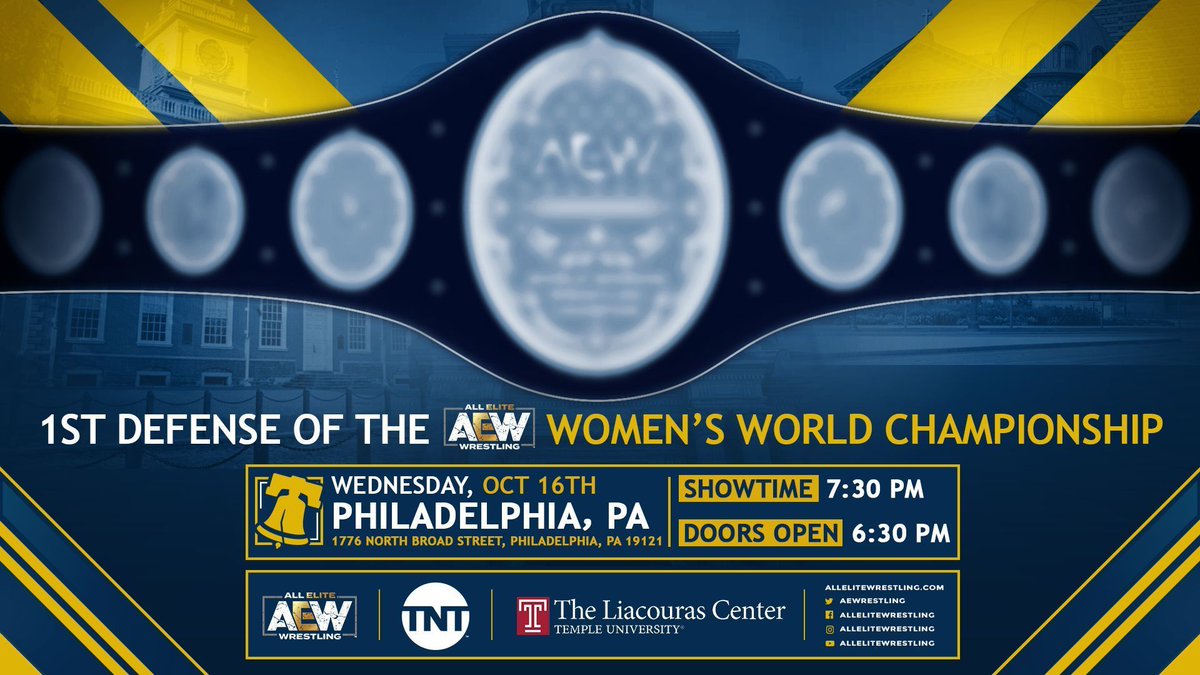 AEW has announced that the first defense of their Women’s Championship will take place at the Liacouras Center in Philadelphia, Pennsylvania on Wednesday, October 16. Tickets for weeks two and three of AEW TV will go on sale tomorrow at noon Eastern time. Week two is being held at the Agganis Arena in Boston, Massachusetts.