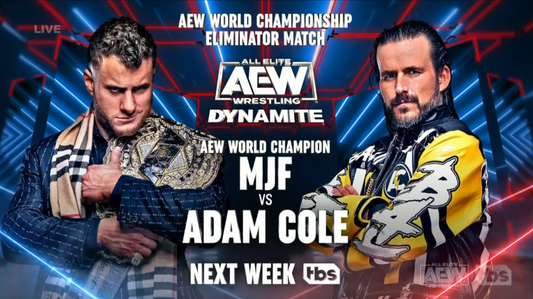 AEW World Champion MJF will face Adam Cole in a World title eliminator bout next week. Should Cole win, he will earn a future World title shot. The MJF-Cole feud kicked off on Dynamite with an in-ring promo segment involving the two.