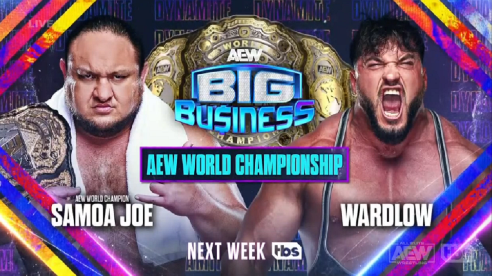 As revealed during Wednesday’s Dynamite season premiere, Samoa Joe will defend the AEW World title against Wardlow at Big Business in Boston on Wednesday, March 13.