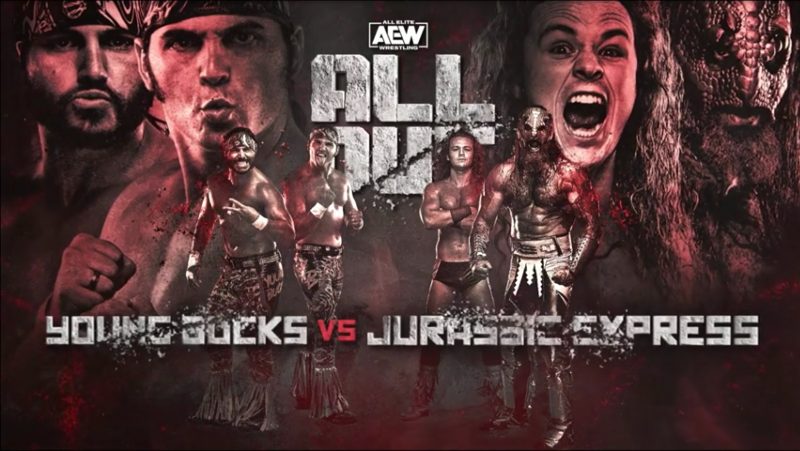 As a result of their win on AEW Dynamite Wednesday, the Young Bucks will face Jurassic Express on Saturday’s All Out pay-per-view.