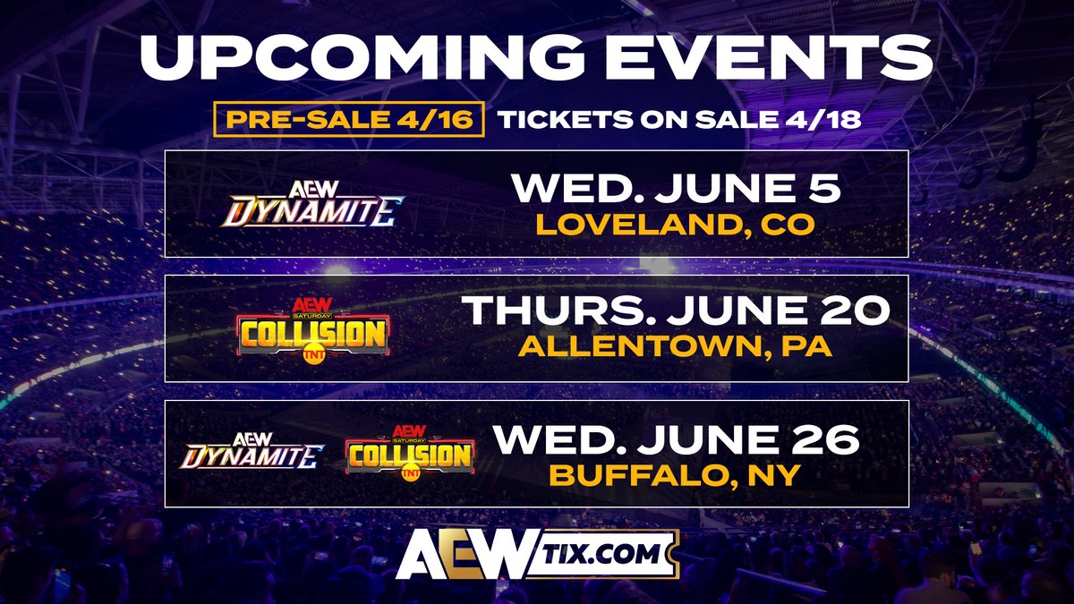 - AEW announced three new show locations for June: