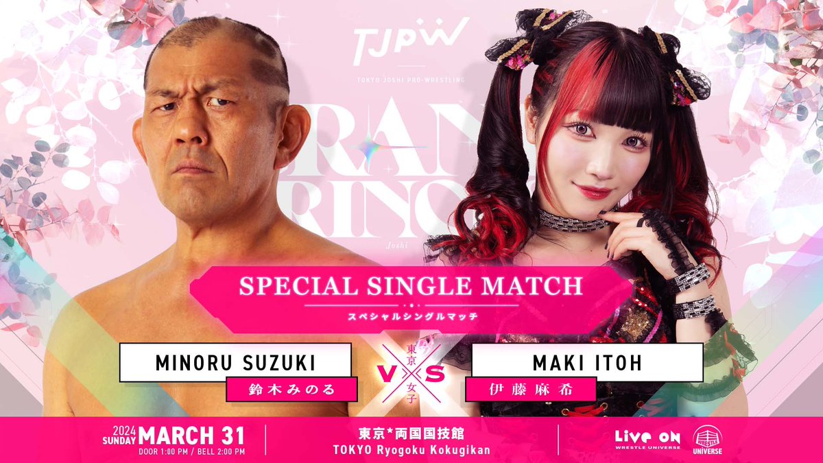 - Minoru Suzuki vs. Maki Itoh has been announced for TJPW Grand Princess 2024. The show is taking place in Tokyo on Sunday, March 31. It will air live on Wrestle Universe.