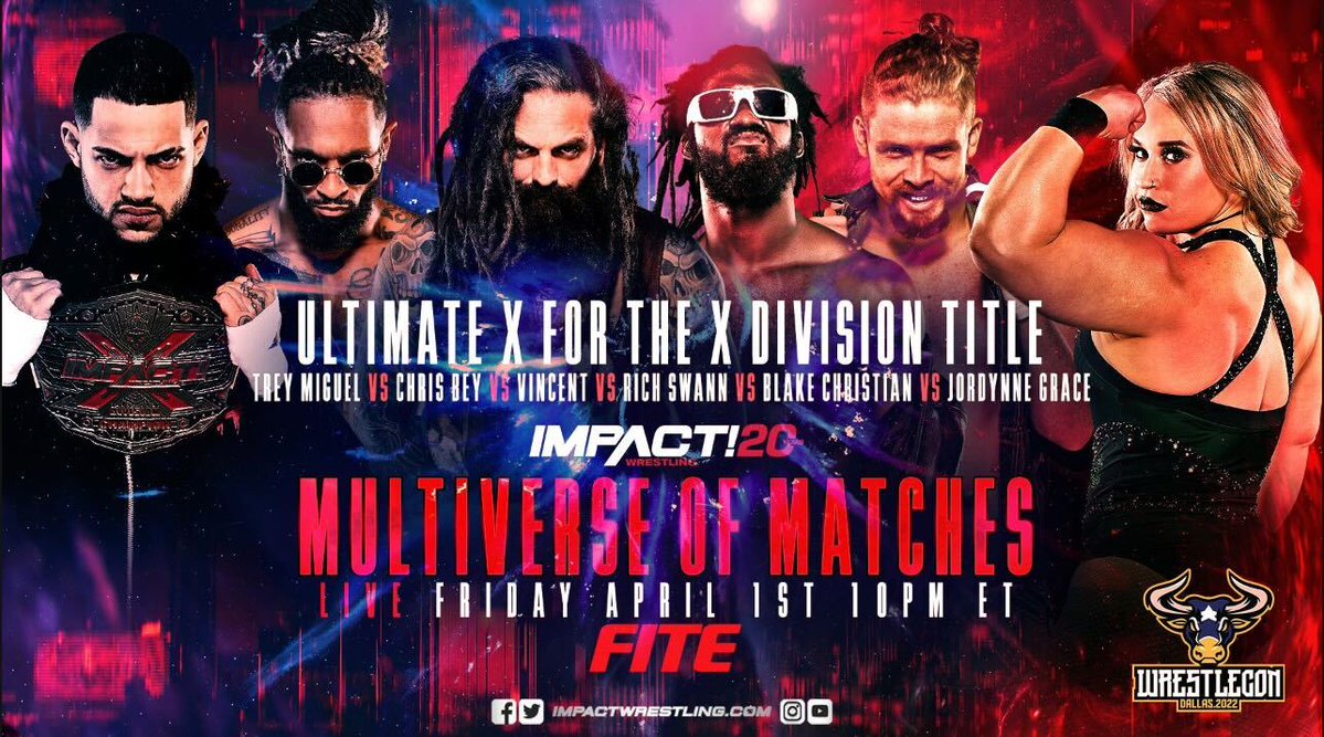 - Ultimate X match: X-Division Champion Trey Miguel defends against Chris Bey, Vincent, Rich Swann, Blake Christian, and Jordynne Grace