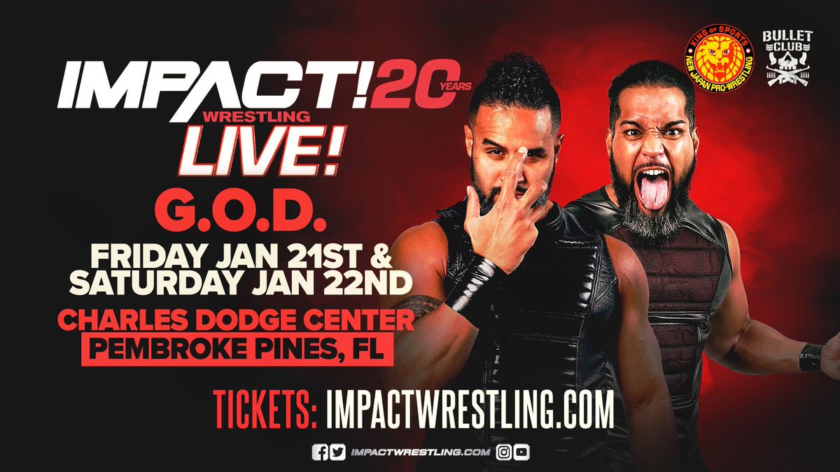GOD’s announcement comes on the heels of word that fellow NJPW and Bullet Club member Jay White will be returning to Impact at the same tapings. Some sort of Bullet Club faction war has been teased at different times on social media between GOD, White, and former Bullet Club members Karl Anderson and Doc Gallows.