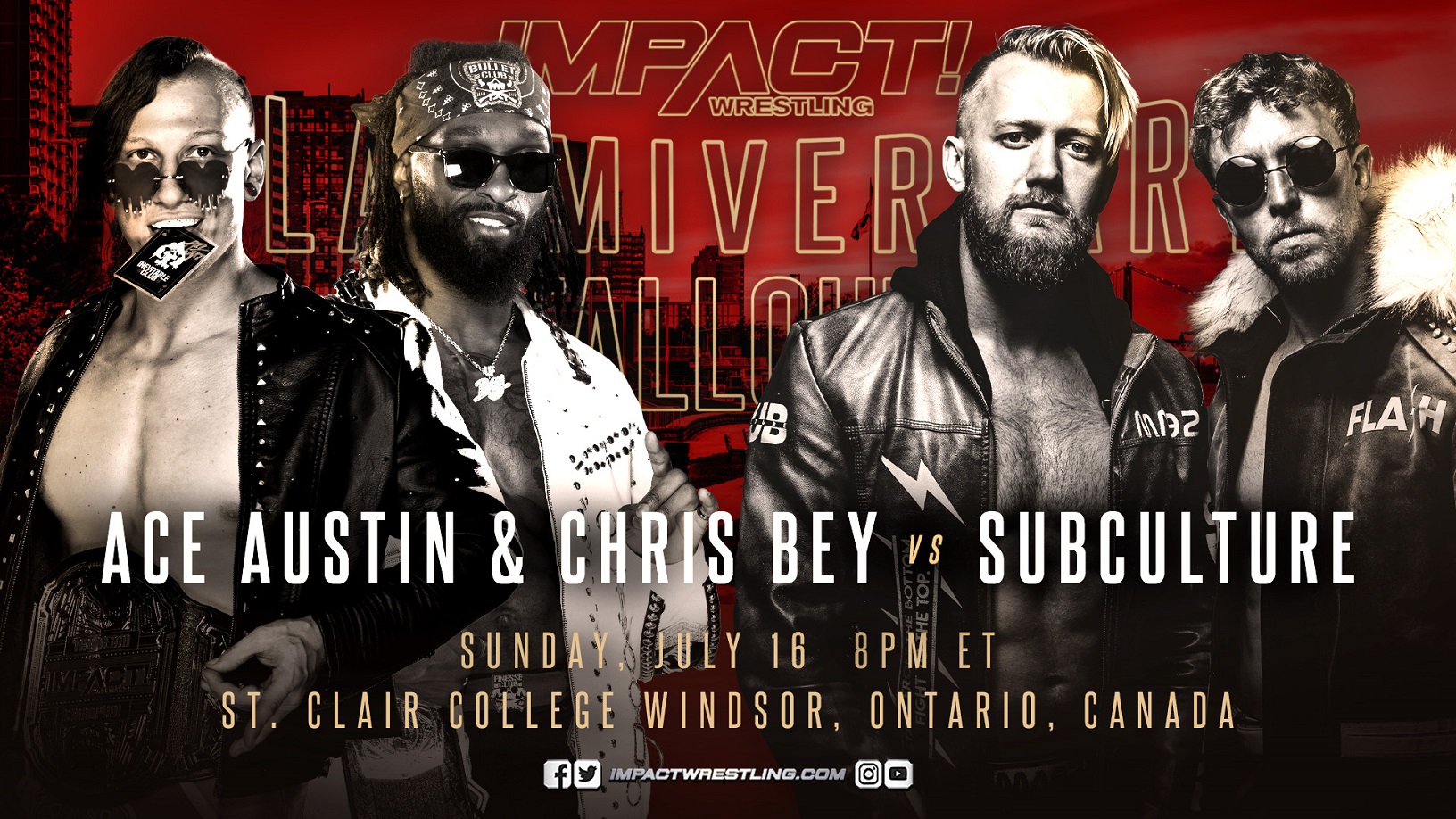 - Impact Tag Team Champions Subculture (Flash Morgan Webster & Mark Andrews) defeated ABC (Chris Bey & Ace Austin to retain the titles. The Rascalz (Trey Miguel & Zachary Wentz) interfered.