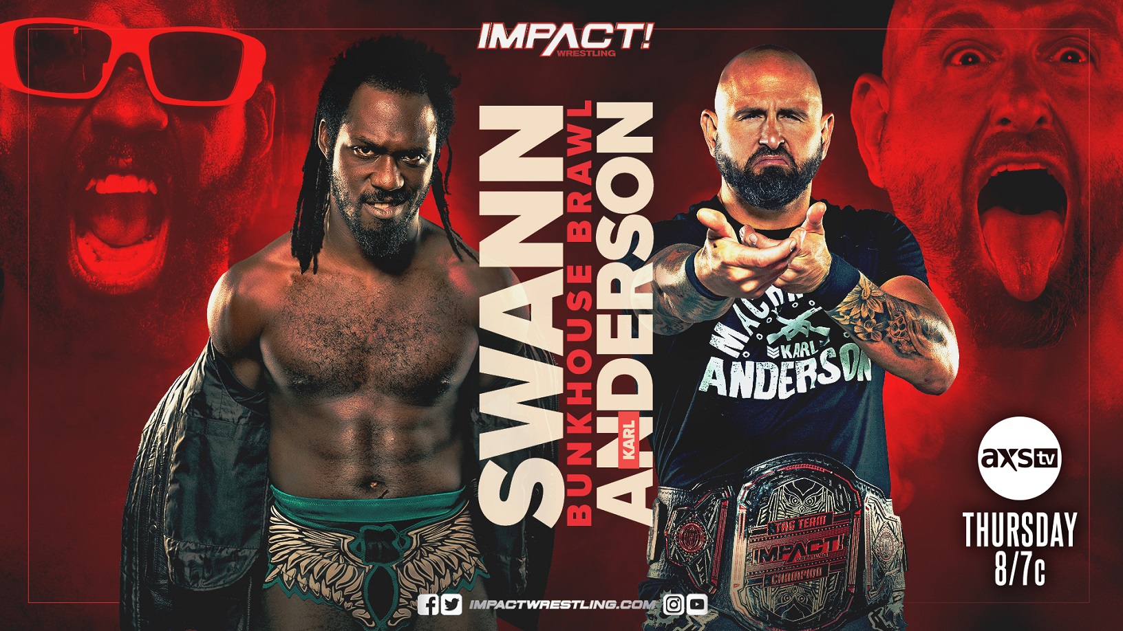 The ongoing feud between Tag Team Champions The Good Brothers and Rich Swann & Willie Mack continues Thursday as Swann takes on Karl Anderson in a bunkhouse brawl on Impact Wrestling.