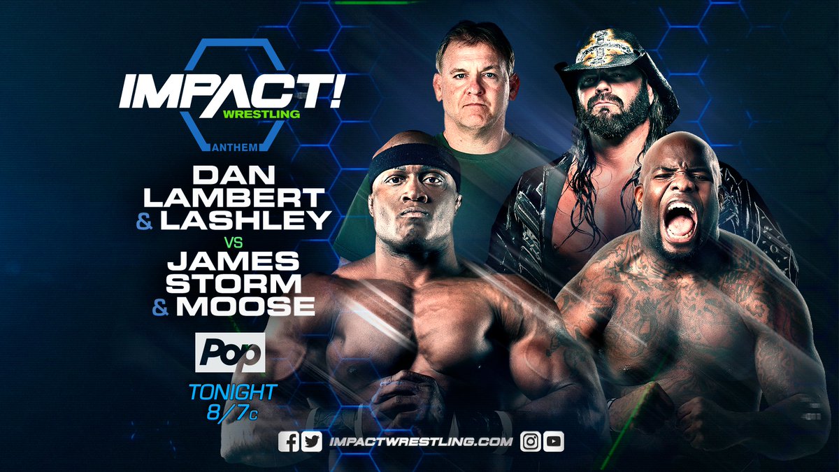 Tonight: Dan Lambert & Bobby Lashley face off with Moose & James Storm. Plus, Johnny Impact & Petey Williams face Chris Adonis & Eli Drake.
