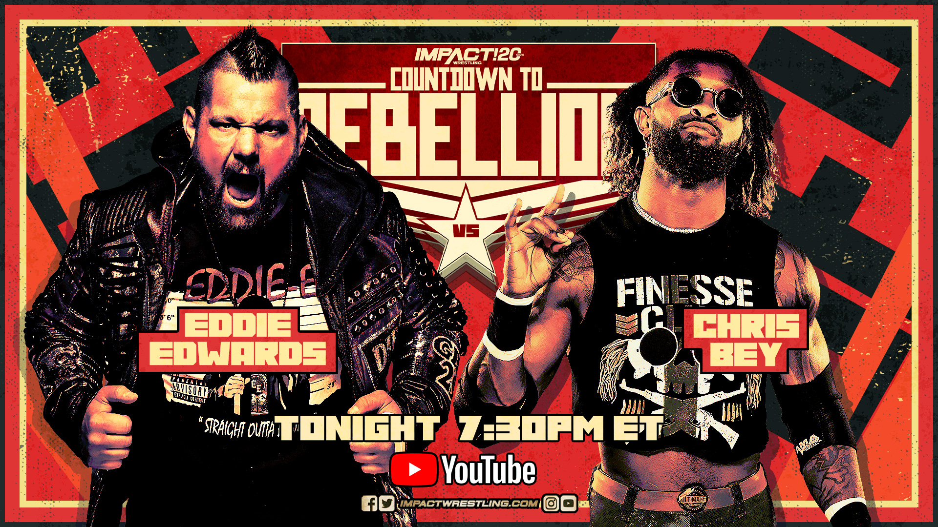 Edwards vs. Bey will be part of the Countdown to Rebellion pre-show tonight, which airs for free on YouTube starting at 7:30 p.m. Eastern time.