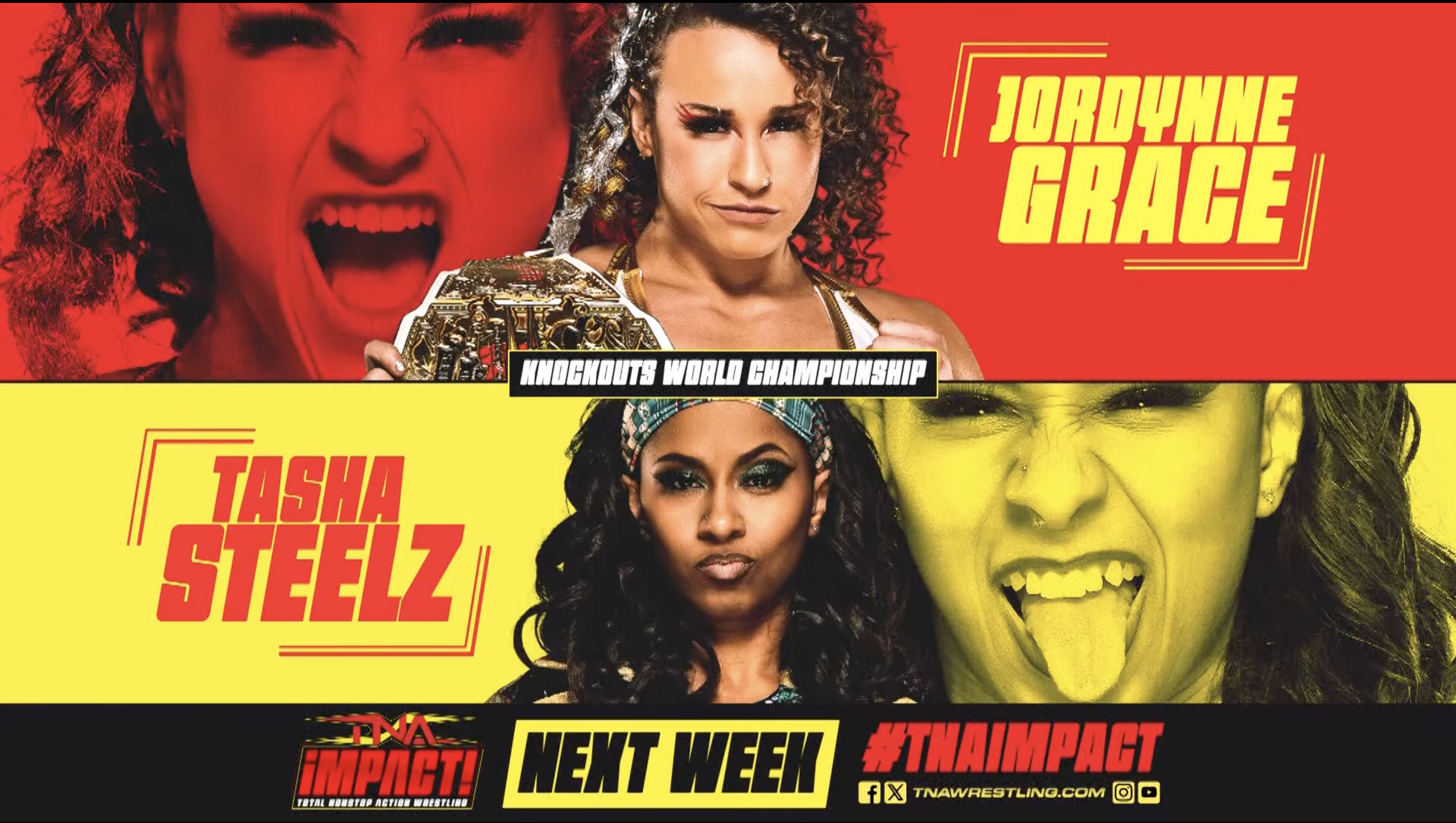 - TNA Knockouts Champion Jordynne Grace defends against Tasha Steelz