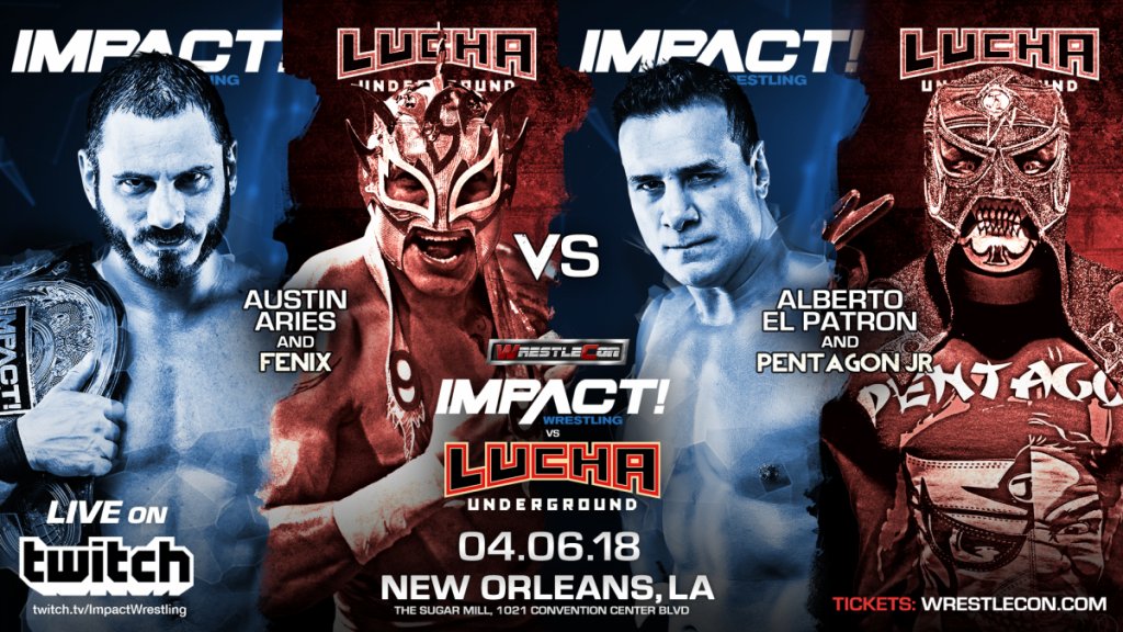 But instead of a team from impact facing a team from LU, it will be Austin Aries & Fenix vs. Alberto El Patron & Pentagon Jr. The match was announced by Josh Mathews on Facebook Live today.