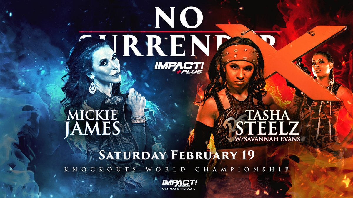The Impact Knockouts title will be on the line as Mickie James will defend the gold against Tasha Steelz at February 19th’s No Surrender.