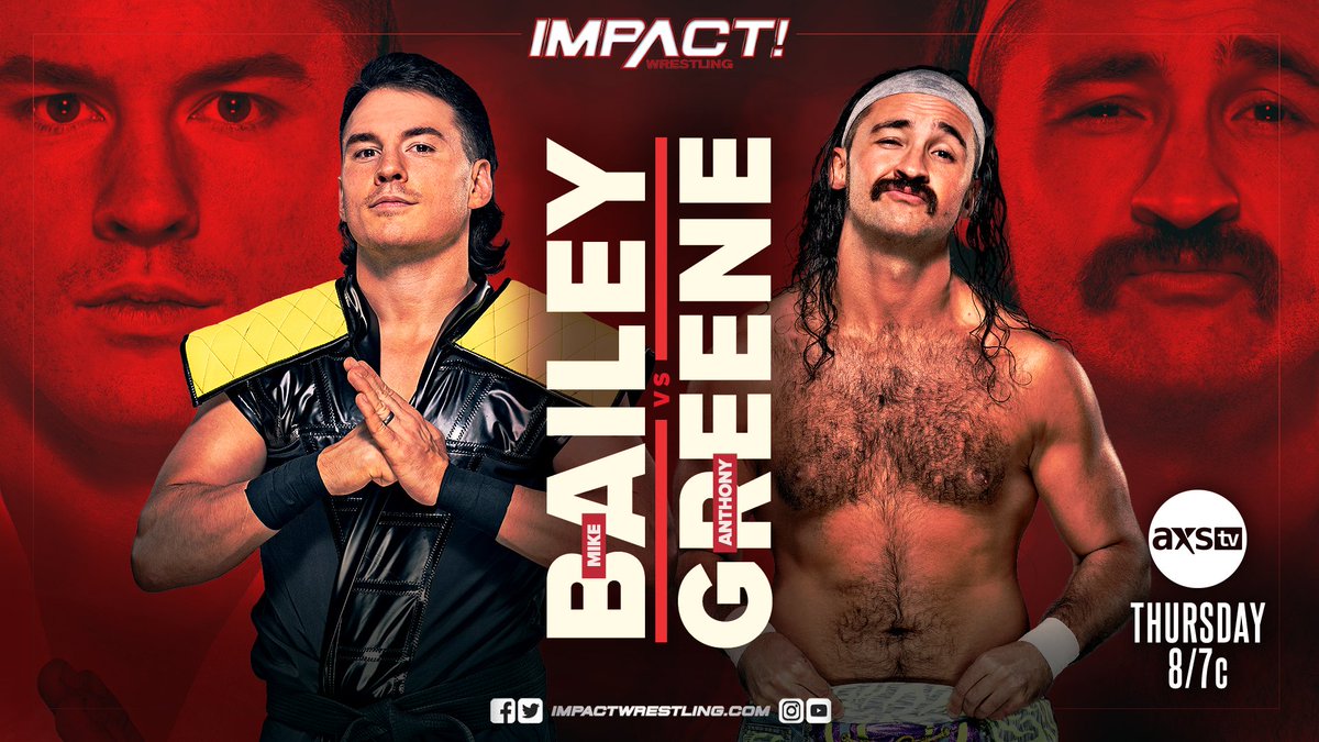 Former X-Division Champion “Speedball” Mike Bailey will take on Anthony Greene on this Thursday’s Impact Wrestling on AXS TV.
