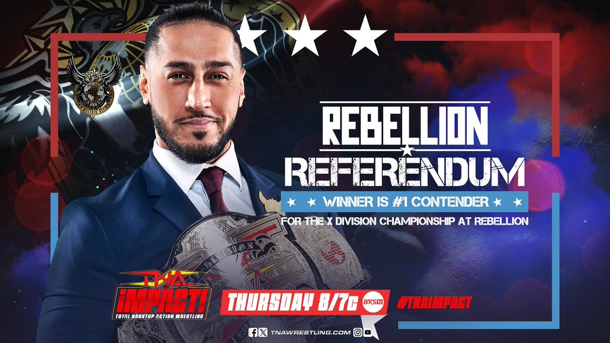 TNA has announced that “Mustafa Ali’s Rebellion Referendum” will air on Impact this Thursday. It’s a multi-man number one contender’s match to determine who will challenge Ali for the X-Division Championship at next month’s Rebellion pay-per-view.