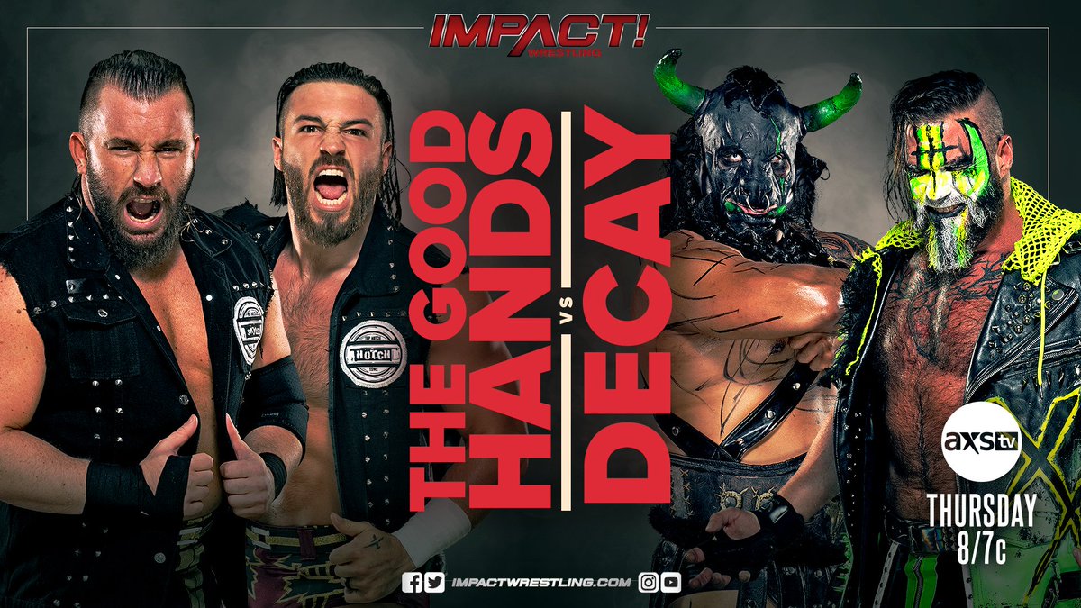 A new tag team bout has been added to Thursday’s Impact Wrestling on AXS TV as The Good Hands (John Skyler & Jason Hotch) will take on Decay (Crazzy Steve & Black Taurus).