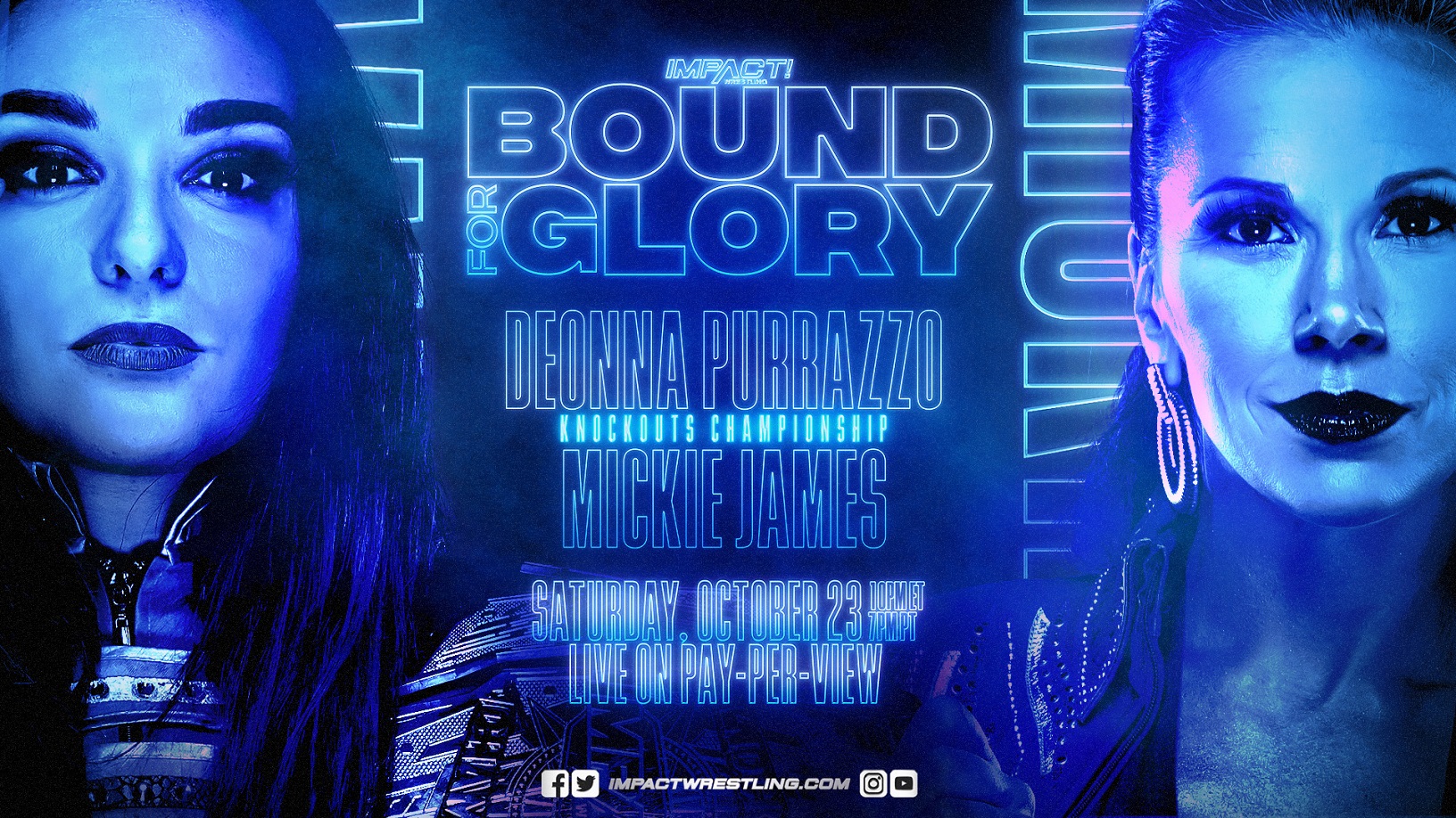 Impact Knockouts Champion Deonna Purrazzo will defend her title against Mickie James at October 23rd’s Bound for Glory, one of three new matches added to the pay-per-view.