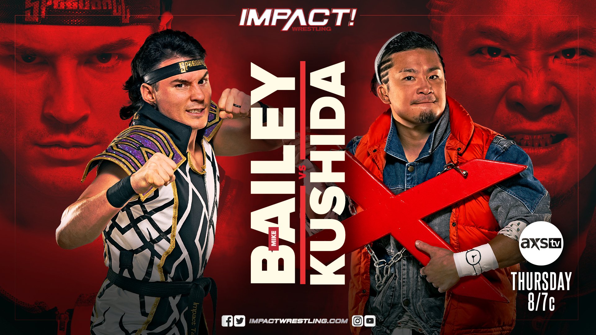 Three new matches were officially added to this Thursday’s Impact Wrestling on AXS TV including KUSHIDA vs. “Speedball” Mike Bailey.