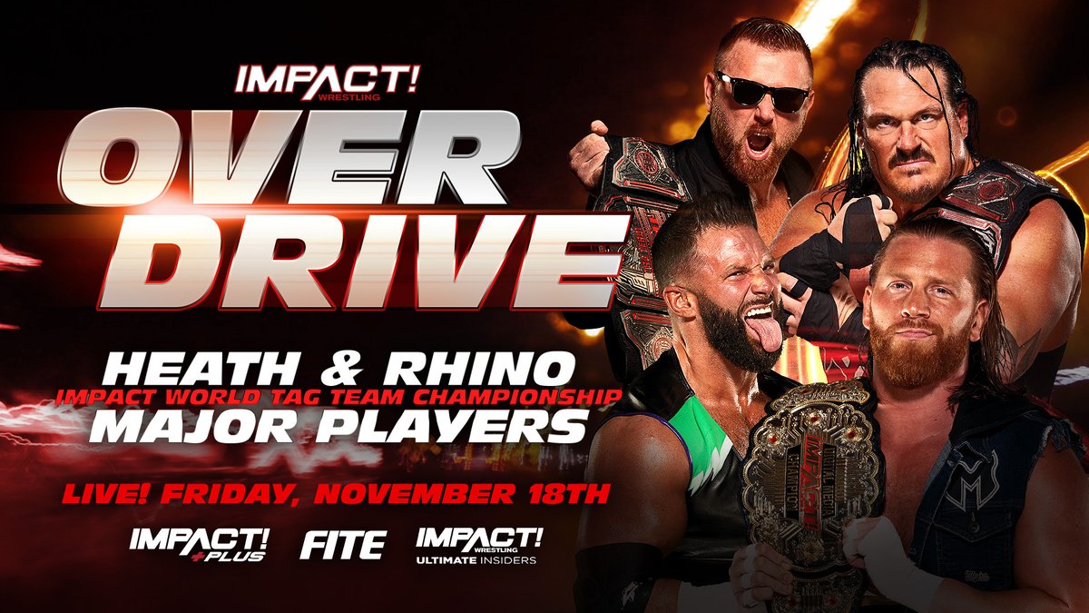 The first title defense for Impact Tag Team Champions Heath & Rhino will take place at November’s Over Drive against The Major Players.