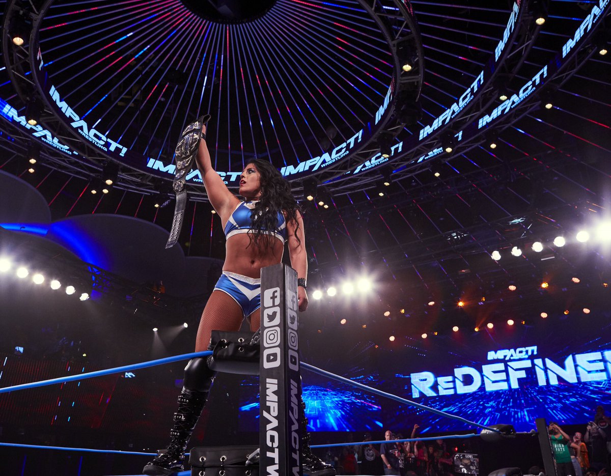 Blanchard’s first stint with TNA ended in June 2020 when the promotion terminated its relationship with her, stripping her of the TNA World Championship in the process. She was living in Mexico during the COVID-19 pandemic and there had been attempts made to get her to return to the United States and drop the title, but the two sides were not able to come to terms.