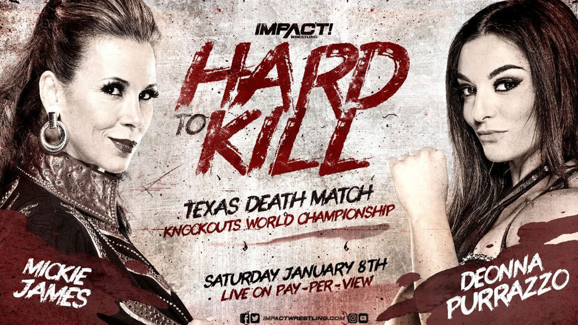 The rematch for the Impact Knockouts title at January’s Hard to Kill between champion Mickie James and former champion Deonna Purrazzo will now be a Texas Death Match, announced on Thursday’s show along with a no contact clause until the pay-per-view.