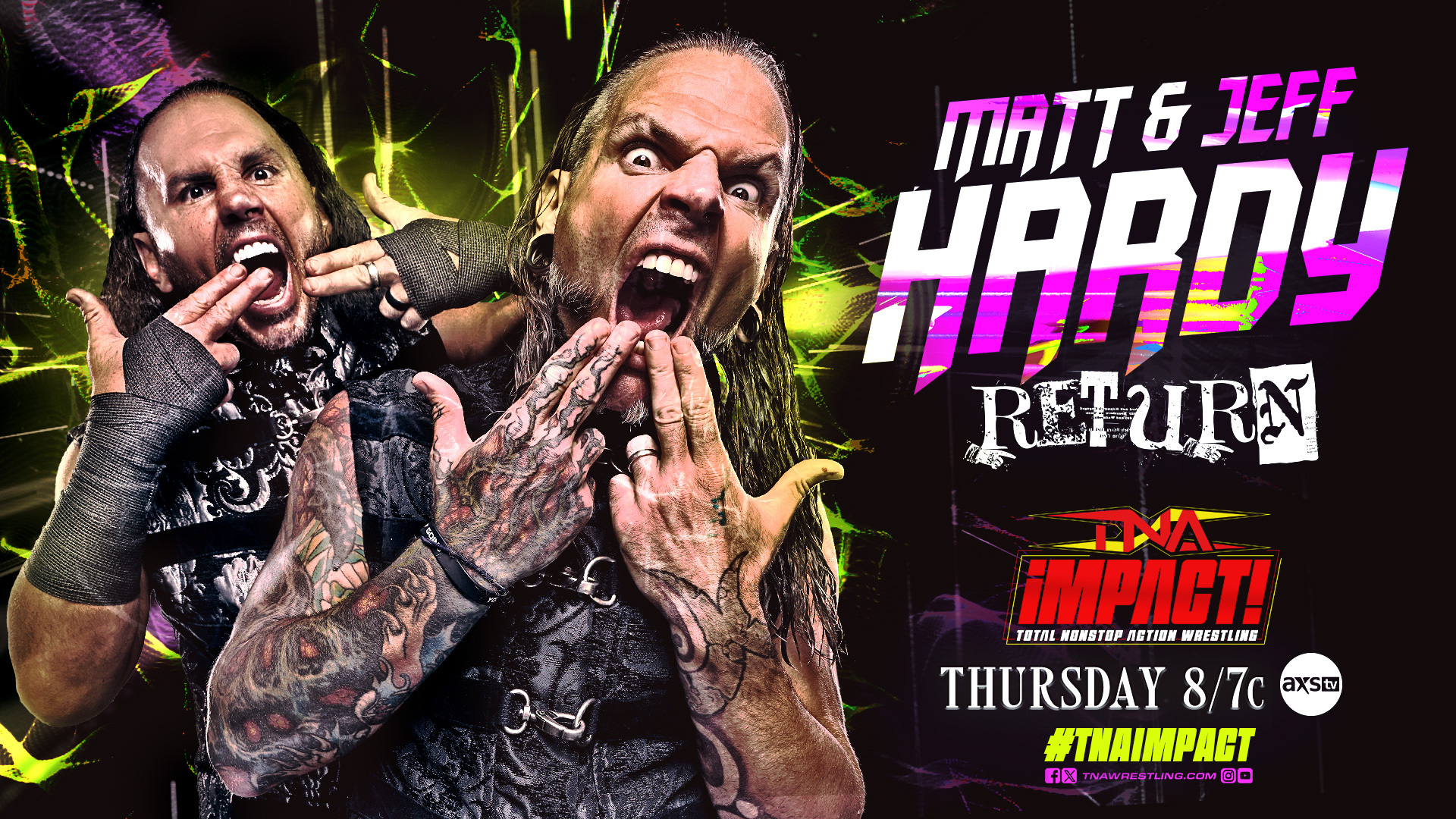 The return of The Hardys and their imminent Tag title challenge was made official on this week’s Impact. It will be Matt & Jeff facing Eddie Edwards & Brian Myers with the Tag Team gold on the line on next week’s episode.
