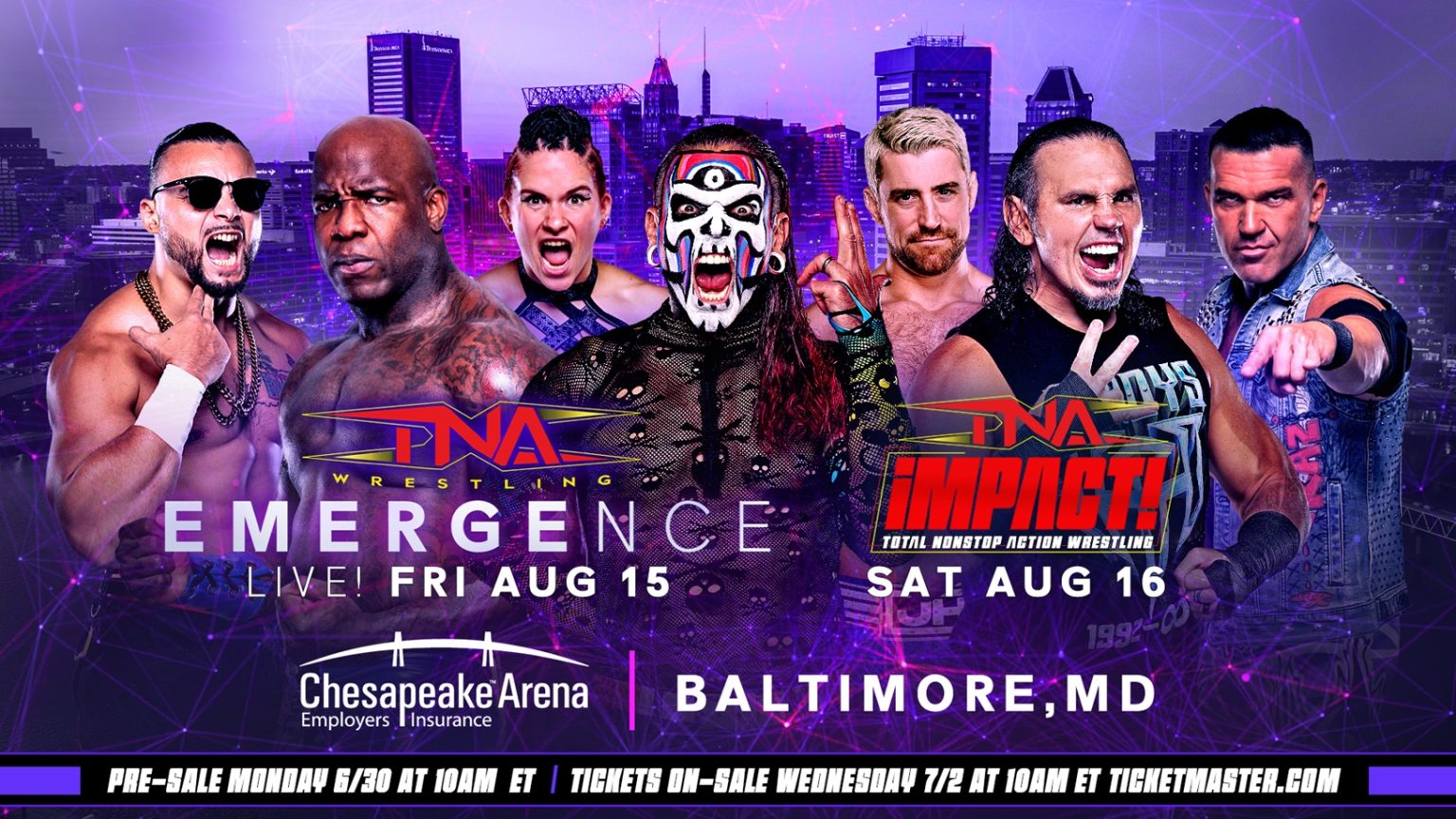- TNA Emergence on Friday, August 15 at Chesapeake Employers Insurance Arena in Baltimore, Maryland