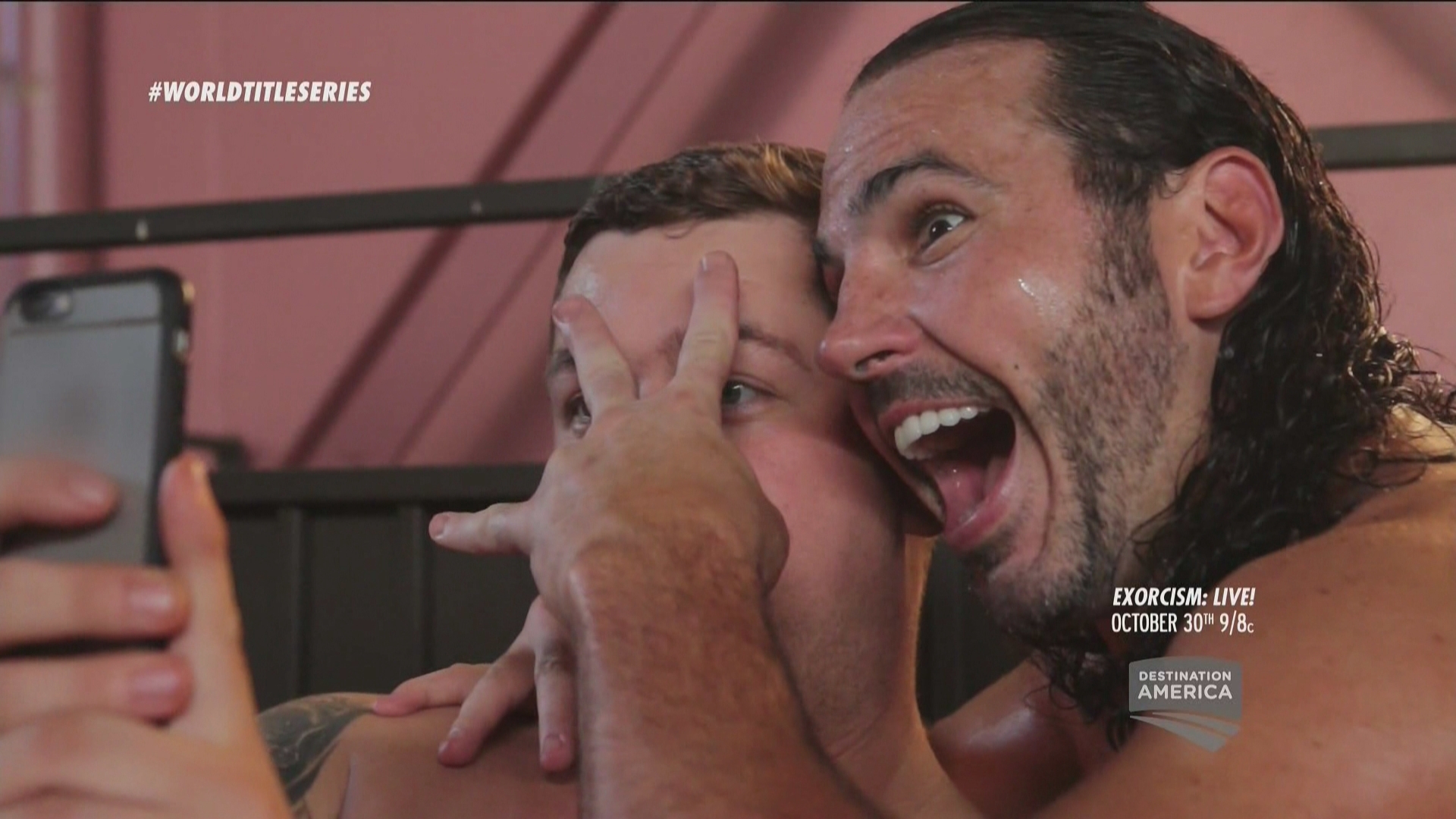 We get a recap of Robbie vs. Matt and Matt cuts a post-match promo about how Robbie E has grown. Robbie says he doesn’t feel like a loser because he earned respect and he’s becoming more serious. Matt is interrupted by Grado, who wants a selfie. Matt does the V1-AAAAHHH bit and blocks Grado’s face. Well, that was a thing. Grado comes down while the commentary is drowned out by Pope talking about Game of War and Drew Galloway. Josh puts Grado over as “one of the top 32 competitors in the World Title Series” of 32 competitors. Poor Grado. We get a Galloway hype video.