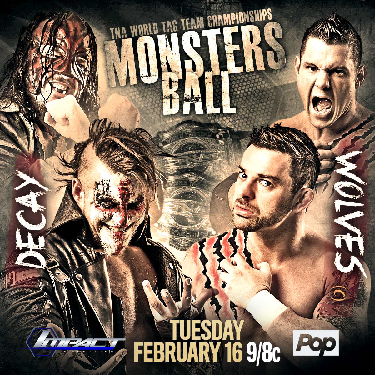 Ethan Carter III and Matt Hardy continue their feud over the TNA World Title. TNA World Tag champions, The Wolves defend against Decay in a Monster’s Ball Match. Tag action ensues when The Dollhouse faces off with Madison Rayne and TNA Knockouts Champion, Gail Kim. Plus, appearnces by “Miracle” Mike Bennett, Dixie Carter, Rockstar Spud, Reby Sky, and Tyrus.