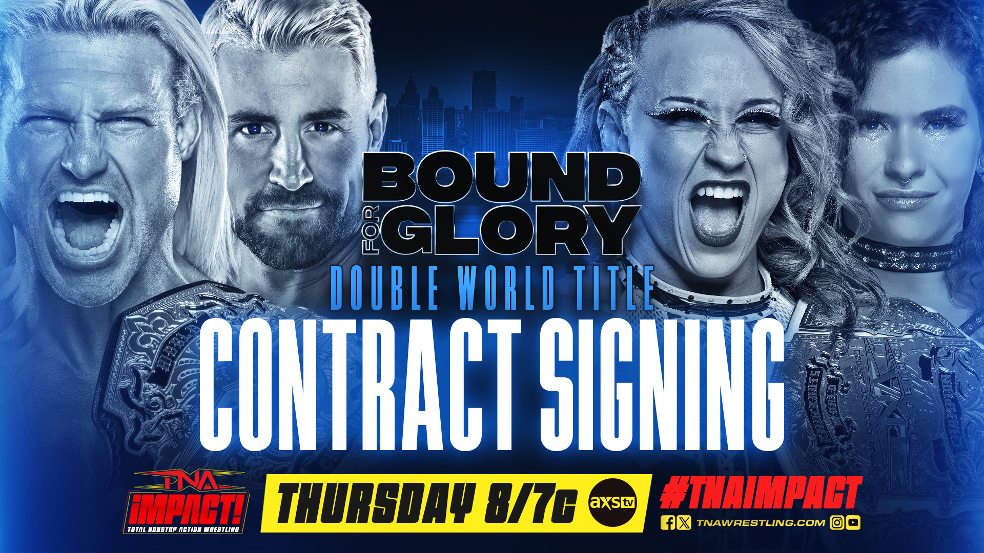 Tonight’s edition of TNA Impact will feature all four competitors in the two World title matches signing their contracts at the same time.