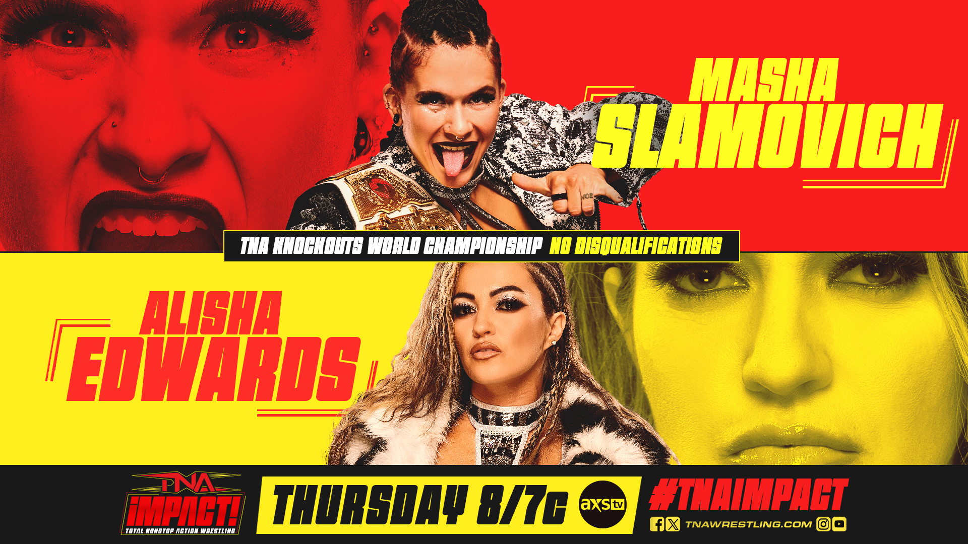 Tonight’s TNA Impact continues the road to next Friday’s Turning Point, headlined by a no DQ title match between Knockouts Champion Masha Slamovich and Alisha Edwards.