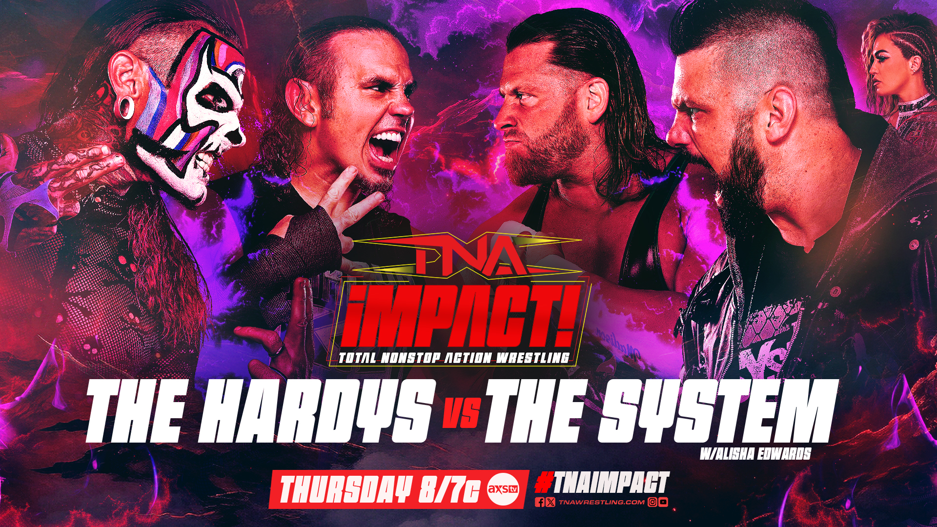 Jeff & Matt Hardy will continue their feud with The System as they take on former TNA Tag Team Champions Eddie Edwards & Brian Myers.