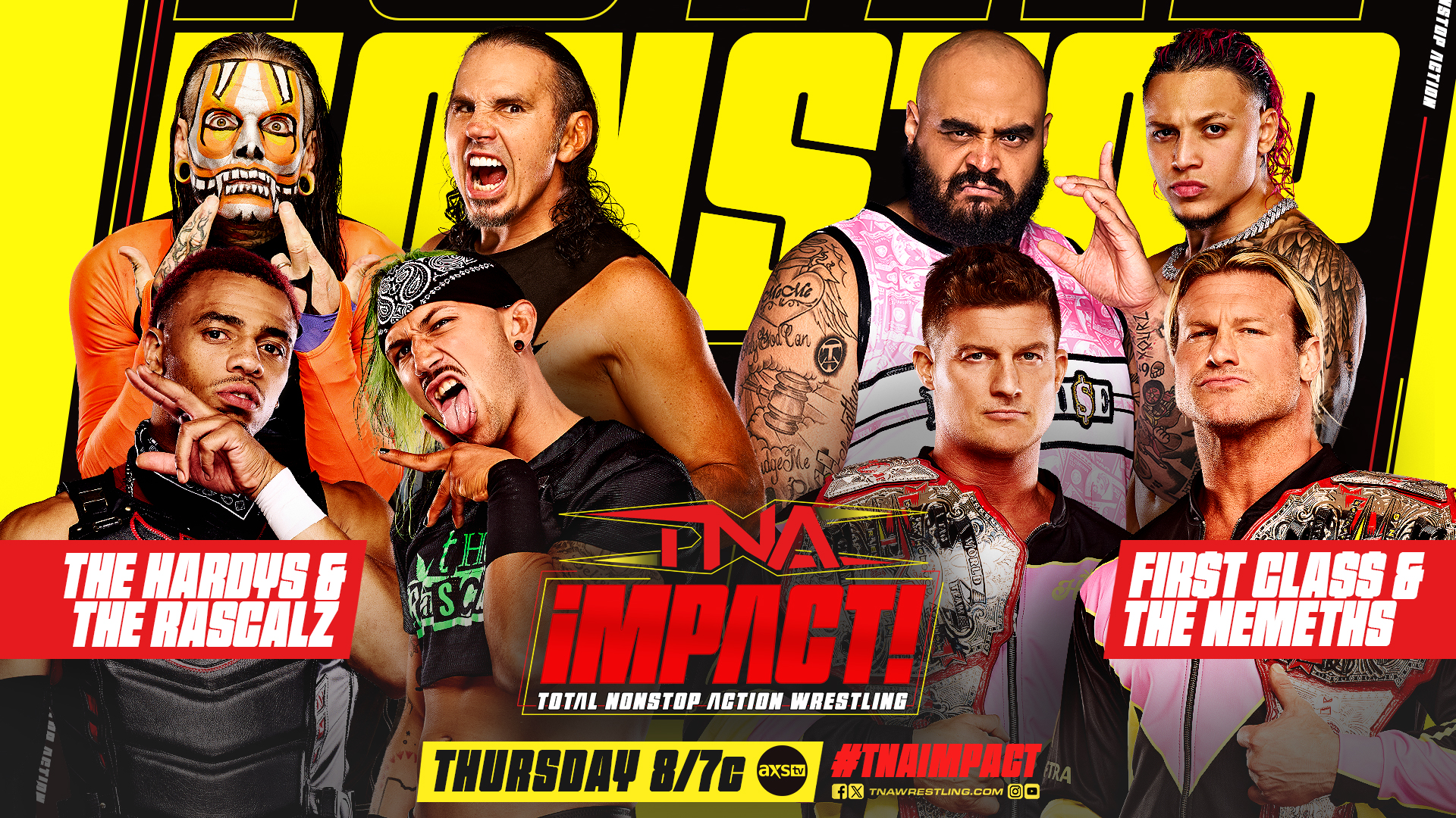 Former TNA Tag Team Champions The Hardys and The Rascalz will unite against current champions The Nemeth Brothers and First Class with TNA World Champion Trick Williams on commentary.