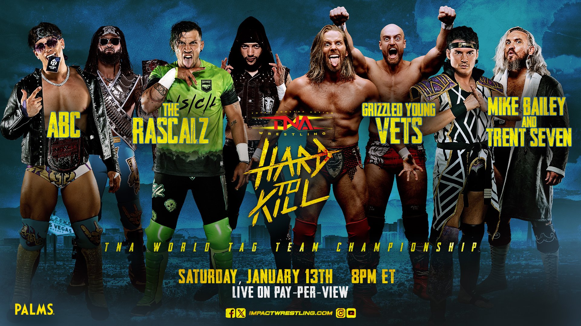On Sunday, Santino Marella announced the titles will be defended in a four-way tag match at Hard to Kill. Champions Ace Austin & Chris Bey will defend against The Rascalz, Mike Bailey & Trent Seven, and the debuting Zack Gibson & James Drake on the show.