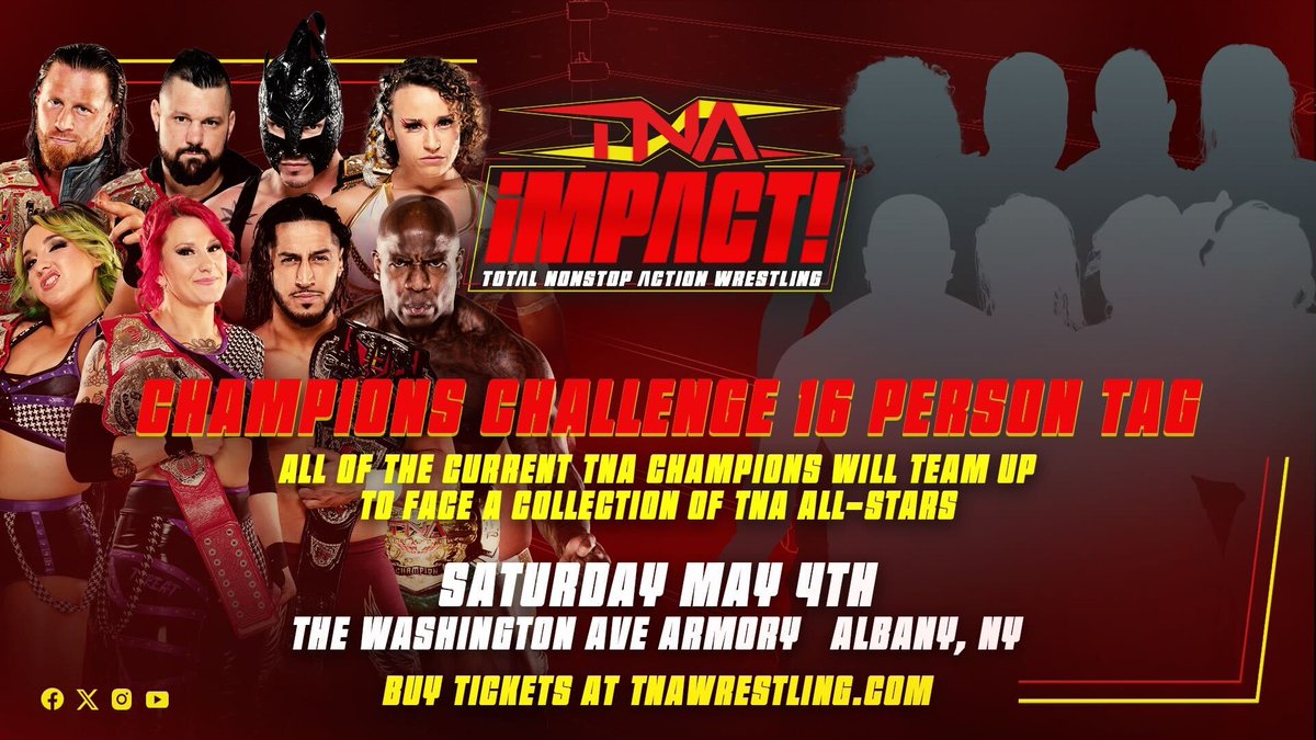 The show was headlined by a Champions Challenge 16-person tag match that saw the promotion’s title-holders team up to take on a team of “TNA All-Stars.”