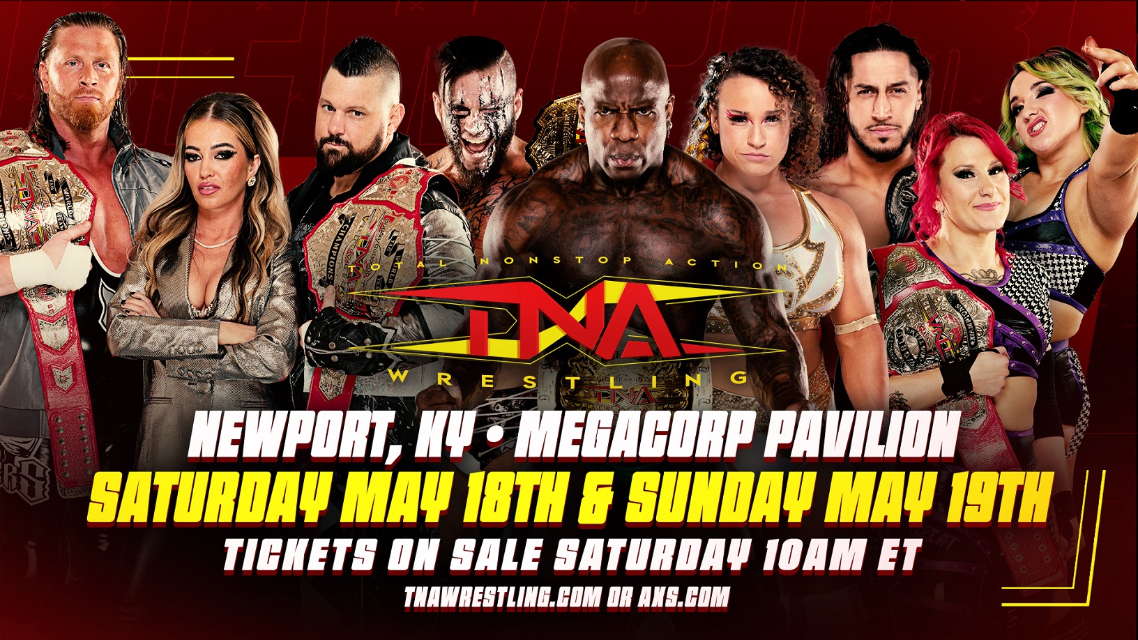It was announced today that TNA will hold TV tapings at MegaCorp Pavilion in Newport, Kentucky on Saturday, May 18 and Sunday, May 19. Matches for the shows are set to be announced late next month. They’ll air on future episodes of Impact.