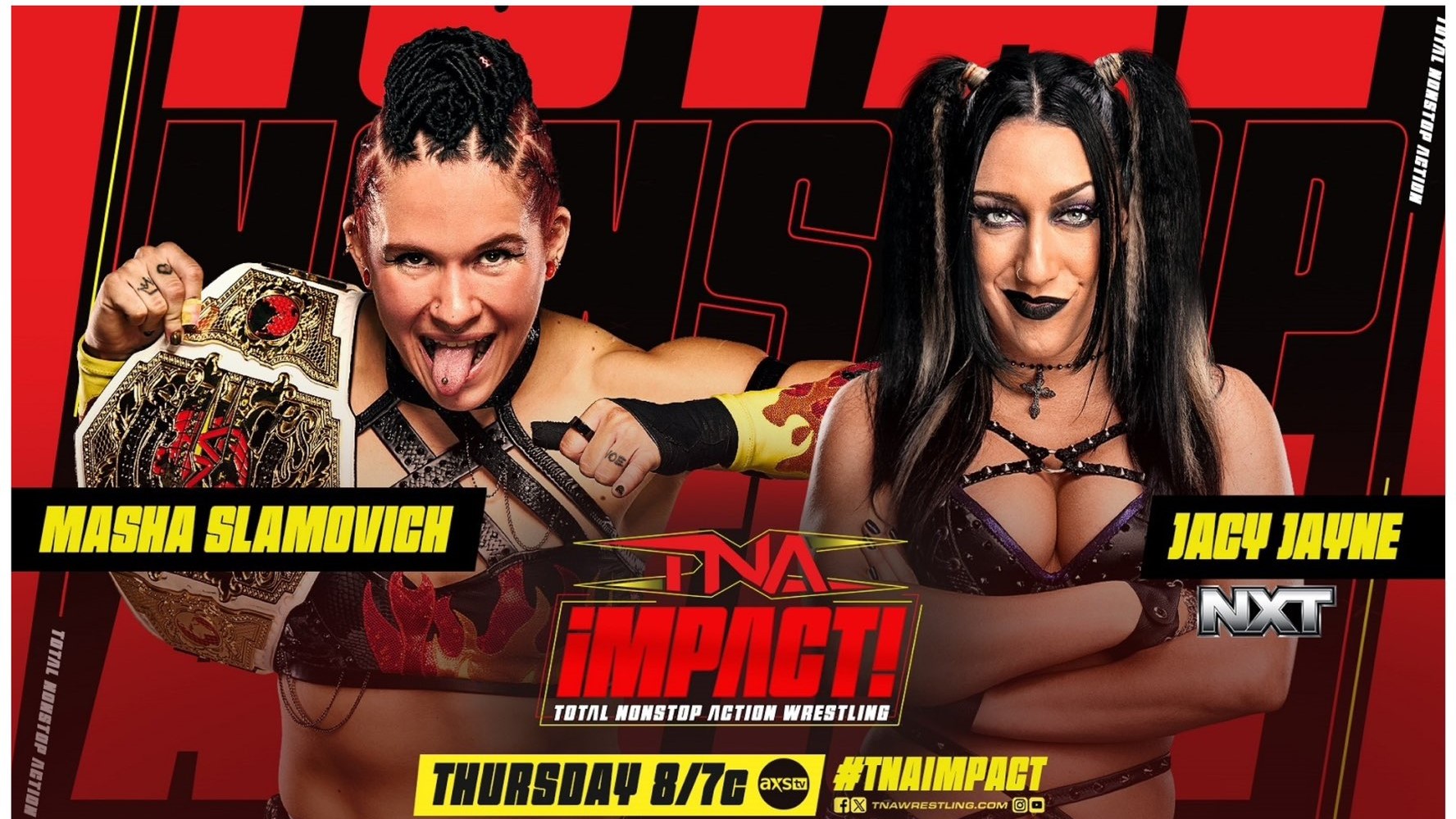 WWE NXT’s Jacy Jayne attacked TNA Knockouts Champion Masha Slamovich on Thursday’s Impact, interrupting a promo battle between Slamovich and Tessa Blanchard. In the aftermath, Santino Marella announced Slamovich vs. Jayne for next week’s show, with Blanchard banned from ringside.
