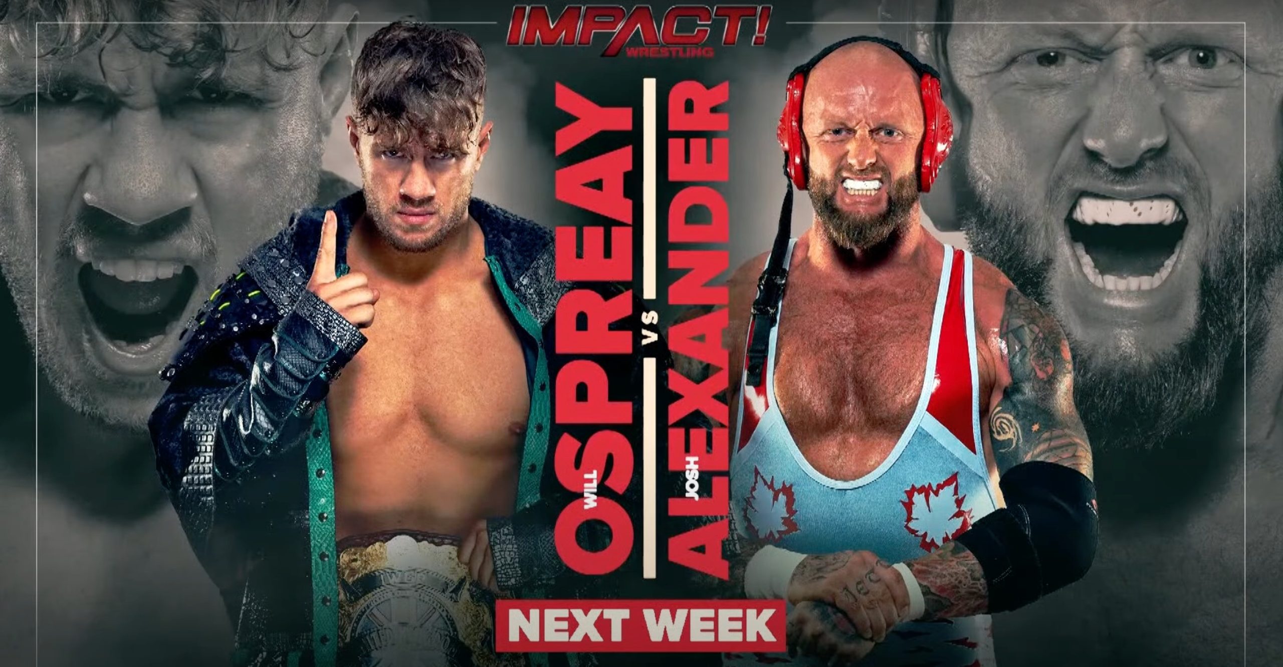 The much-anticipated first time ever clash between Will Ospreay and Josh Alexander will headline next Thursday’s Impact Wrestling on AXS TV.