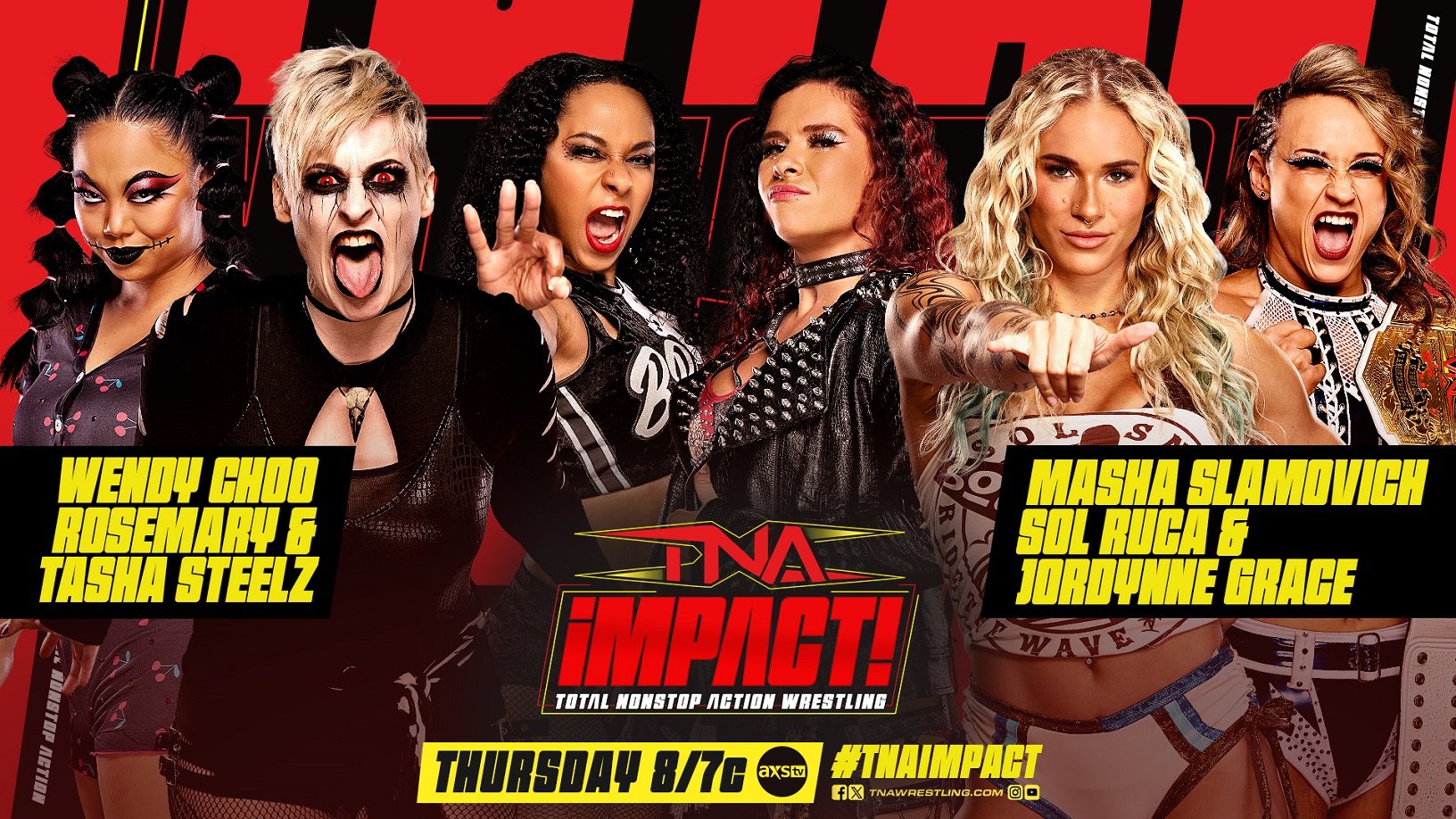 Ruca and Choo were previously announced for the show, competing in a trios match that saw Ruca team with TNA Knockouts Champion Jordynne Grace and Masha Slamovich against Choo, Rosemary and Tasha Steelz. Reece took on Ash by Elegance.