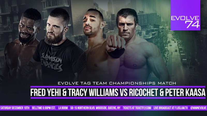 - EVOLVE Tag Team Champions “Hot Sauce” Tracy Williams & Fred Yehi defeated Ricochet & Peter Kaasa