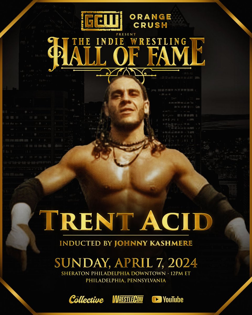Trent Acid is the first member of this year’s class. Acid will be inducted by his former tag team partner Johnny Kashmere. Known as The Backseat Boyz, they were a top indie tag team and held titles in numerous promotions including ROH and CZW.