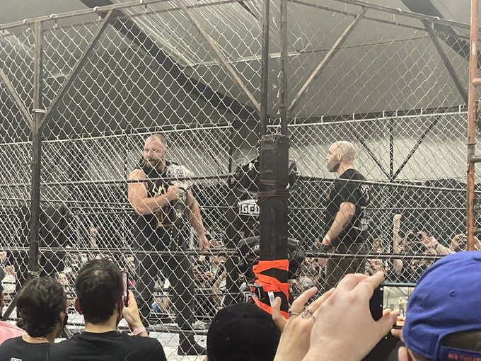 Gage’s Team MDK defeated Rickey Shane Page’s 44OH! in the War Games match at tonight’s GCW show. The War Games cage was then left up for Cardona’s open challenge.