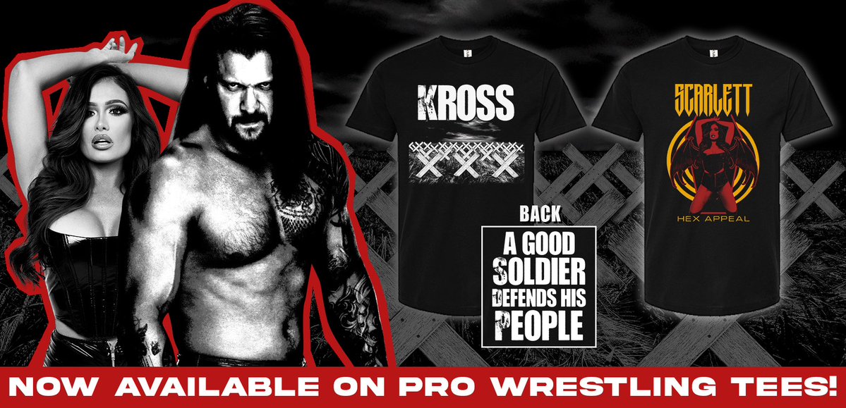 Kross and Scarlett both have new T-shirts on sale after announcing yesterday that their WWE contracts have expired and they are now taking bookings. The Kross shirt is named “Good Soldier” and has the following written on the back: “A Good Soldier Defends His People.”