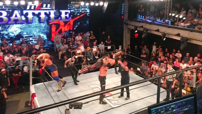 Brody King entered at number three and went after both Lucha Brothers. Fenix and Pentagon hit a series of superkicks and some quick-paced tag team offense before Kenny Doane entered fourth. The Lucha Brothers hit a double superkick on Doane. King focused on Fenix, and Doane focused on Pentagon. Tom Lawlor entered the Battle Riot at five and immediately locked on a rear naked choke on King, who passed out.