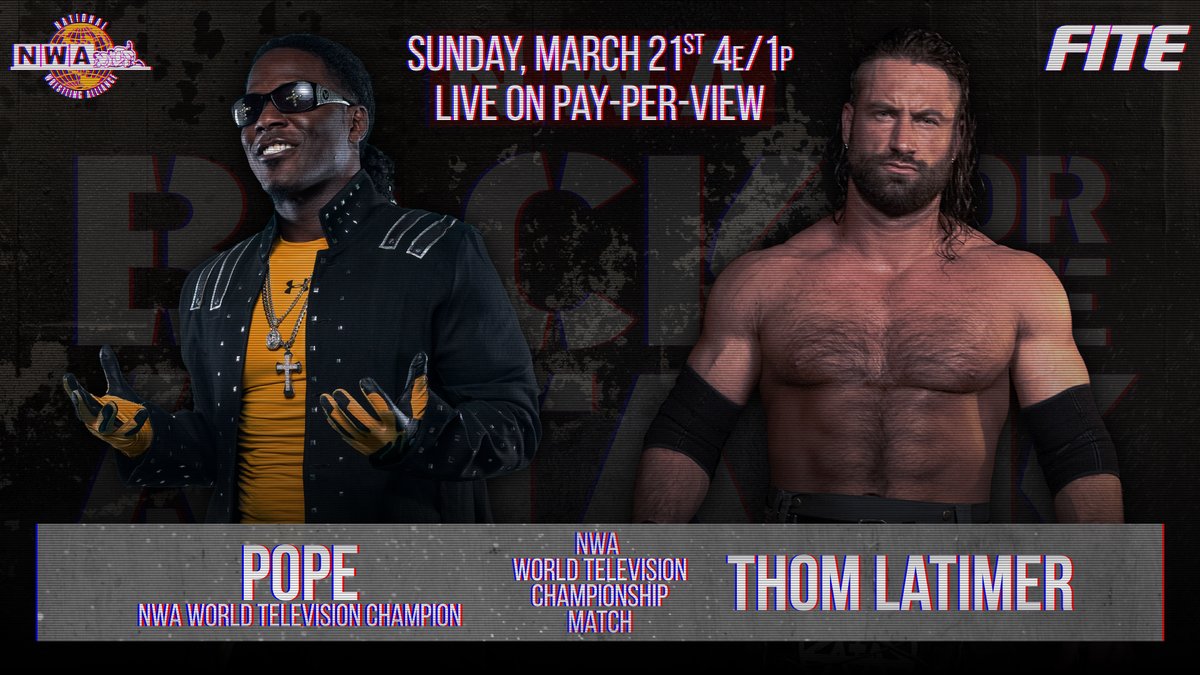 NWA’s social media announced this afternoon that Pope (Elijah Burke) will defend the NWA Television title against Thom Latimer. Pope won the championship on October 20, defeating Zicky Dice after he held the championship for 268 days.