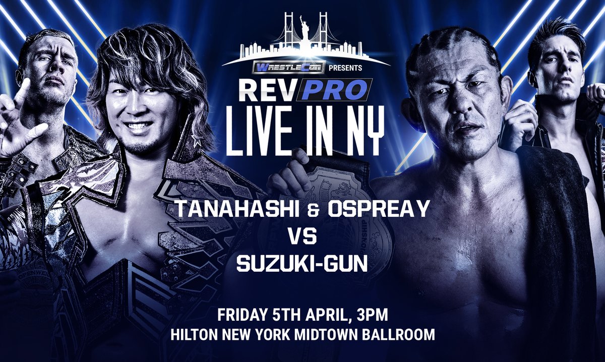 RevPro has announced that Tanahashi & Will Ospreay will face British Tag Team Champions Minoru Suzuki & Zack Sabre Jr. in a non-title match at their WrestleMania week show in New York City on Friday, April 5. The event is taking place at the Hilton New York Midtown Ballroom and will begin at 3 p.m. Eastern time.