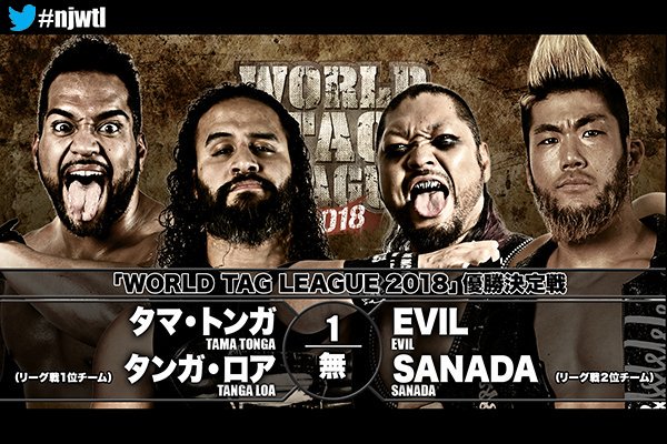 The duo managed to defeat Tama Tonga and Tanga Loa, the Guerrillas of Destiny, after EVIL landed the Darkness Falls on Tama Tonga, with SANADA finishing things off with the moonsault. This likely means that they will face the Guerrillas of Destiny, the IWGP tag team champions, at Wrestle Kingdom 13 for the titles.