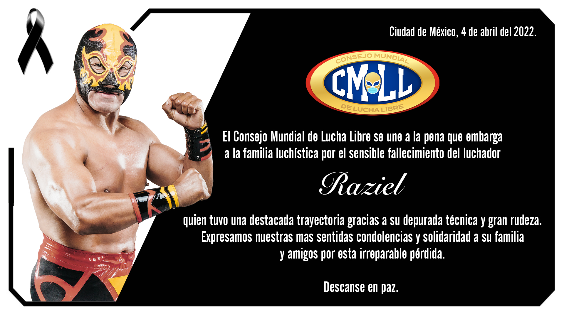 El CMLL se une a la pena que embarga a la familia luchística por el sensible fallecimiento del luchador Raziel, quien tuvo una destacada trayectoria gracias a su depurada técnica y gran rudeza.Descanse en paz. pic.twitter.com/JrhBcLDned