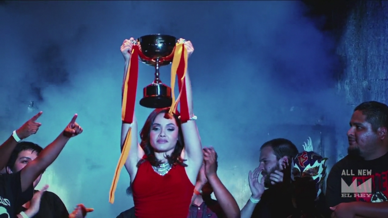 He took the trophy from Melissa Santos and told her to leave before announcing that 32 luchadores will compete in a tournament for the Cueto Cup, and the winner gets a title shot at Ultima Lucha Tres.
