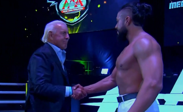 There was a spot during the match where Flair stopped Omega from hitting Andrade with the Mega title belt. Flair and Andrade then took turns chopping Omega. After Flair chopped Konnan down, Andrade and Flair put Omega and Konnan in stereo Figure Four leglocks.
